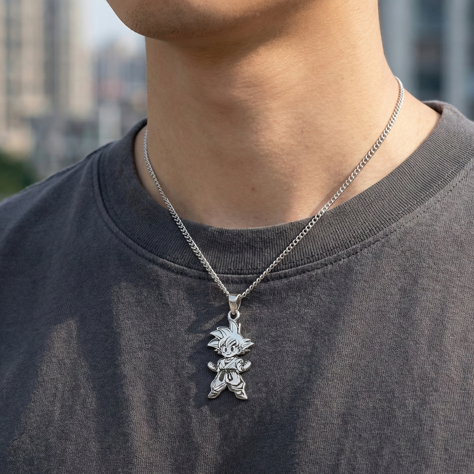 Despierta tu espíritu aventurero con este exclusivo colgante de Goku en su versión clásica. Fabricado con precisión, este accesorio presenta un diseño silueteado y grabado en metal de alta calidad, logrando un brillo espejo que destaca en cualquier ocasión.